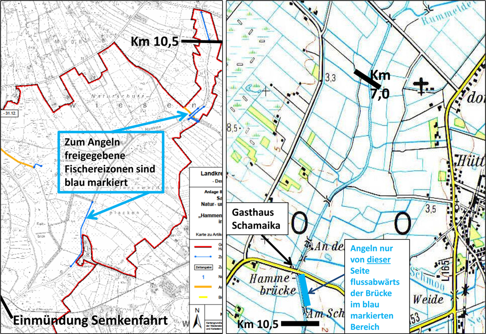Für Angler, die gerne bei uns angeln möchten, gibt es zwei Gewässerstrecken an der Hamme.